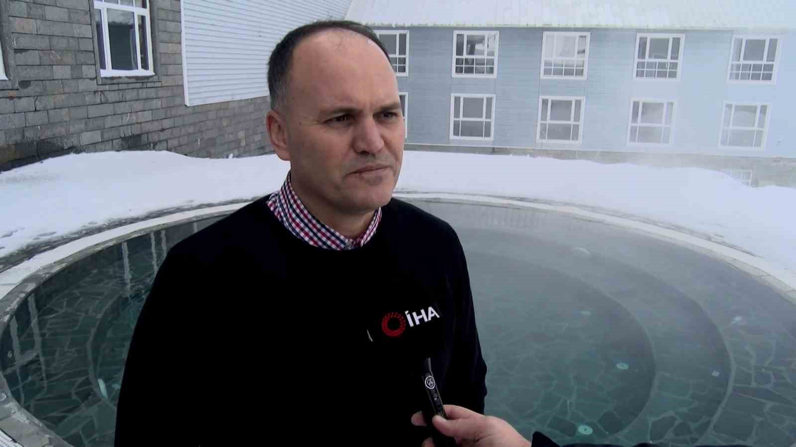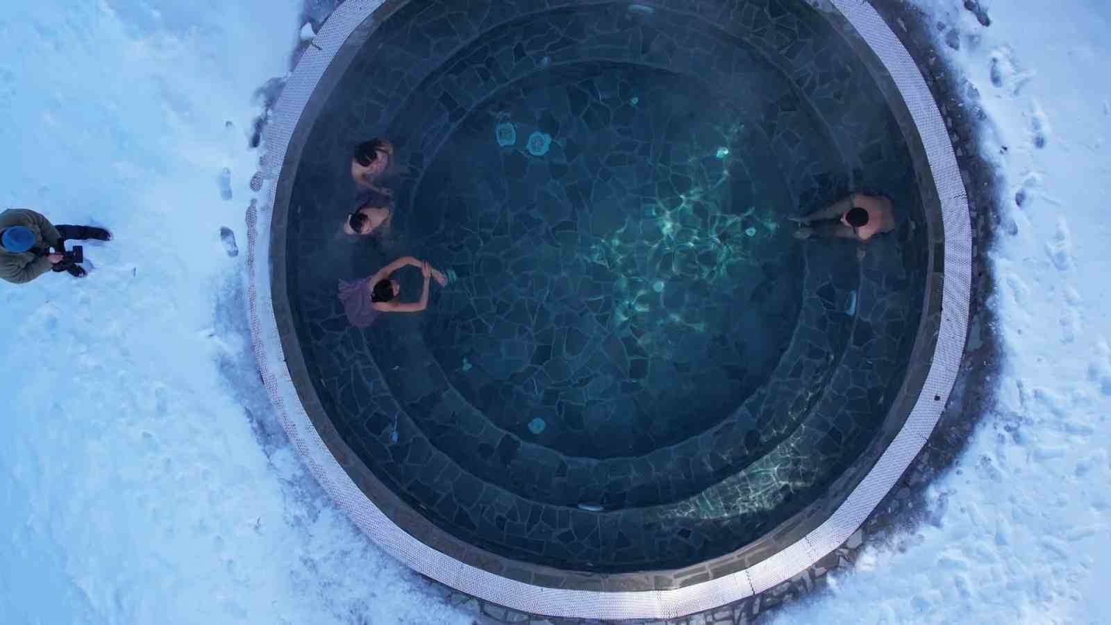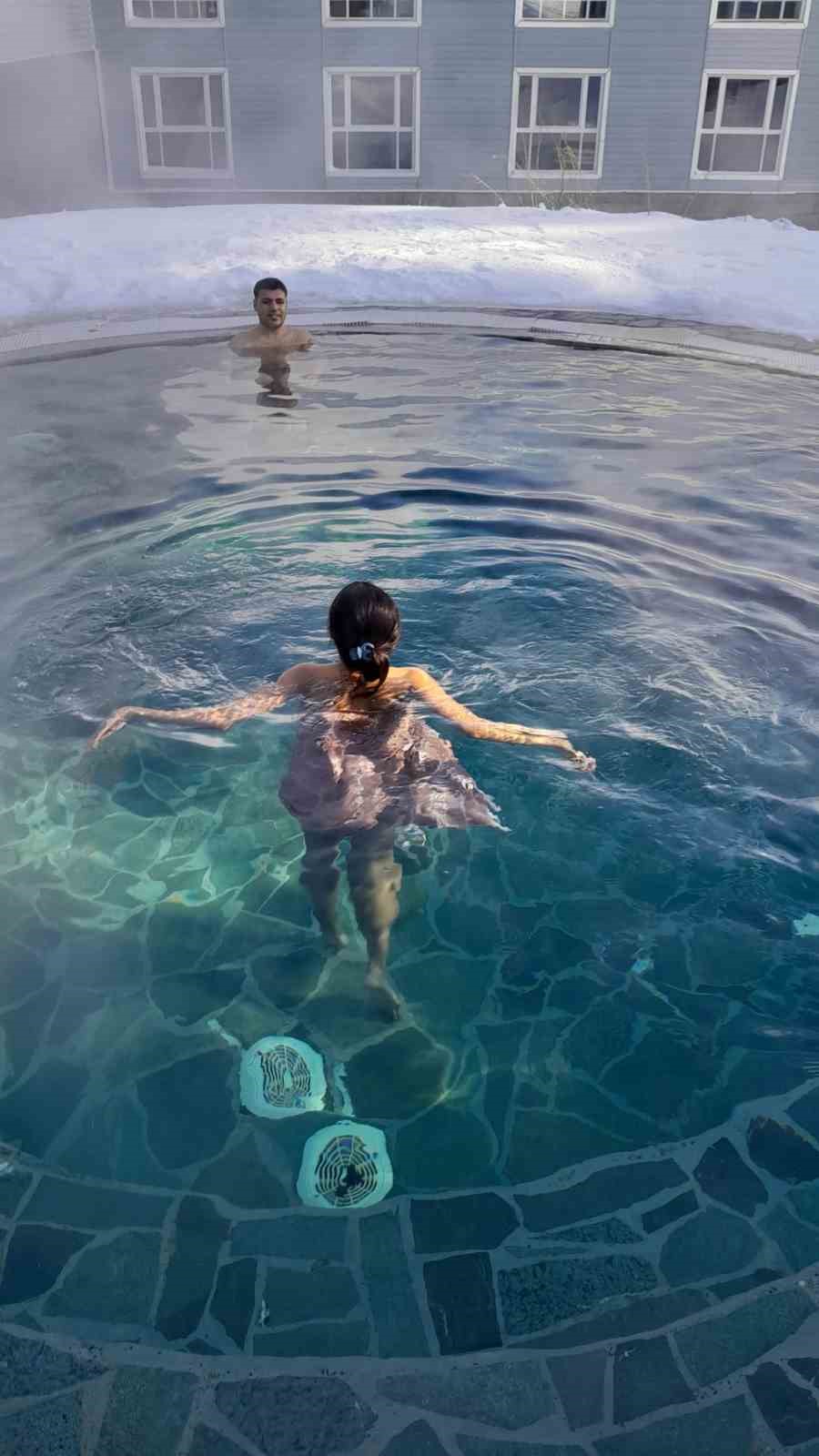 Uludağ’da turistler, eksi derecede karda yürüyüp, açık havadaki sıcak havuza giriyor. Kayak yaparken hamam sefası yapmanın keyfini yaşayan turistler, dondurucu soğuğa rağmen peştamalla dışarıda geziyor.