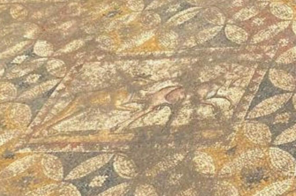 Bu zamana kadar İznik’te çıkarılan en önemli eser olduğu iddia edilen mozaiğin üzerinde iki aynı motif olduğu belirtildi. Motiflerden birinde bir aslanın bir geyiğe saldırdığı av sahnesinin, diğerinde ise İznik Gölünden Nicea kıyısına gelen bir balıkçı teknesinin resmedildiği belirtildi.