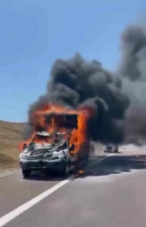 Bursa’da emniyet şeridinde duraklayan tıra arkadan çarpan kamyonet, alevlere teslim oldu. Sürücü kazayı hafif sıyrıklarla atlatırken yangın itfaiyenin müdahalesi sonrası kontrol altına alındı.