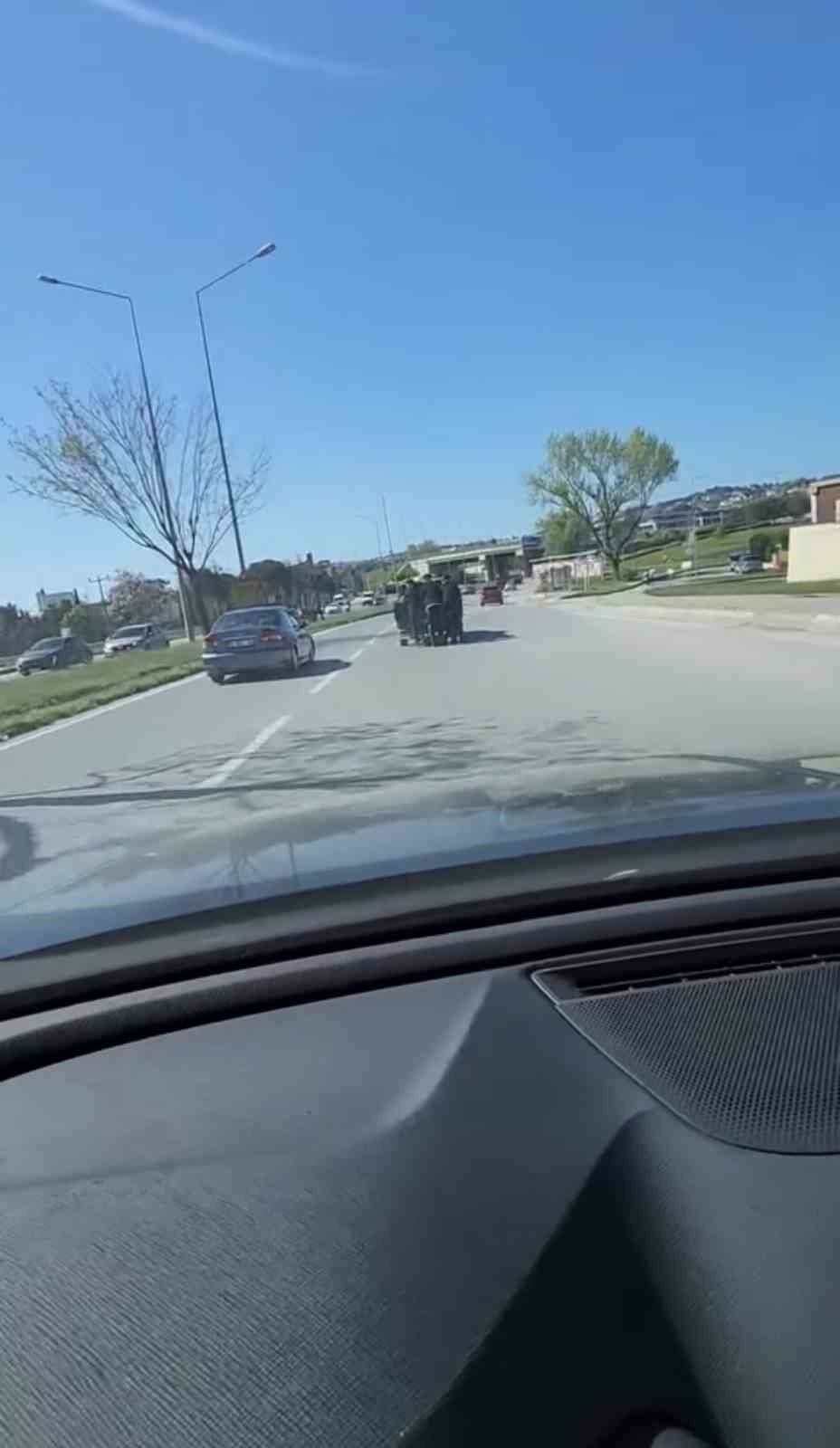 Bursa’da patenli gençler, bir kamyonetin arkasına tutunarak tehlikeli şekilde yolculuk yaptı. Edinilen bilgilere göre, merkez Osmangazi ilçesi Geçit Mahallesi Sanayi Caddesi üzerinde ilerleyen kamyonetin arkasına tutunan patenli gençler, uzun süre bu şekilde seyahat etti. Hem kendi canlarını hem de trafikteki diğer sürücüleri riske atan gençlerin o anları, çevrede bulunan bir vatandaşın cep telefonu kamerasına yansıdı.