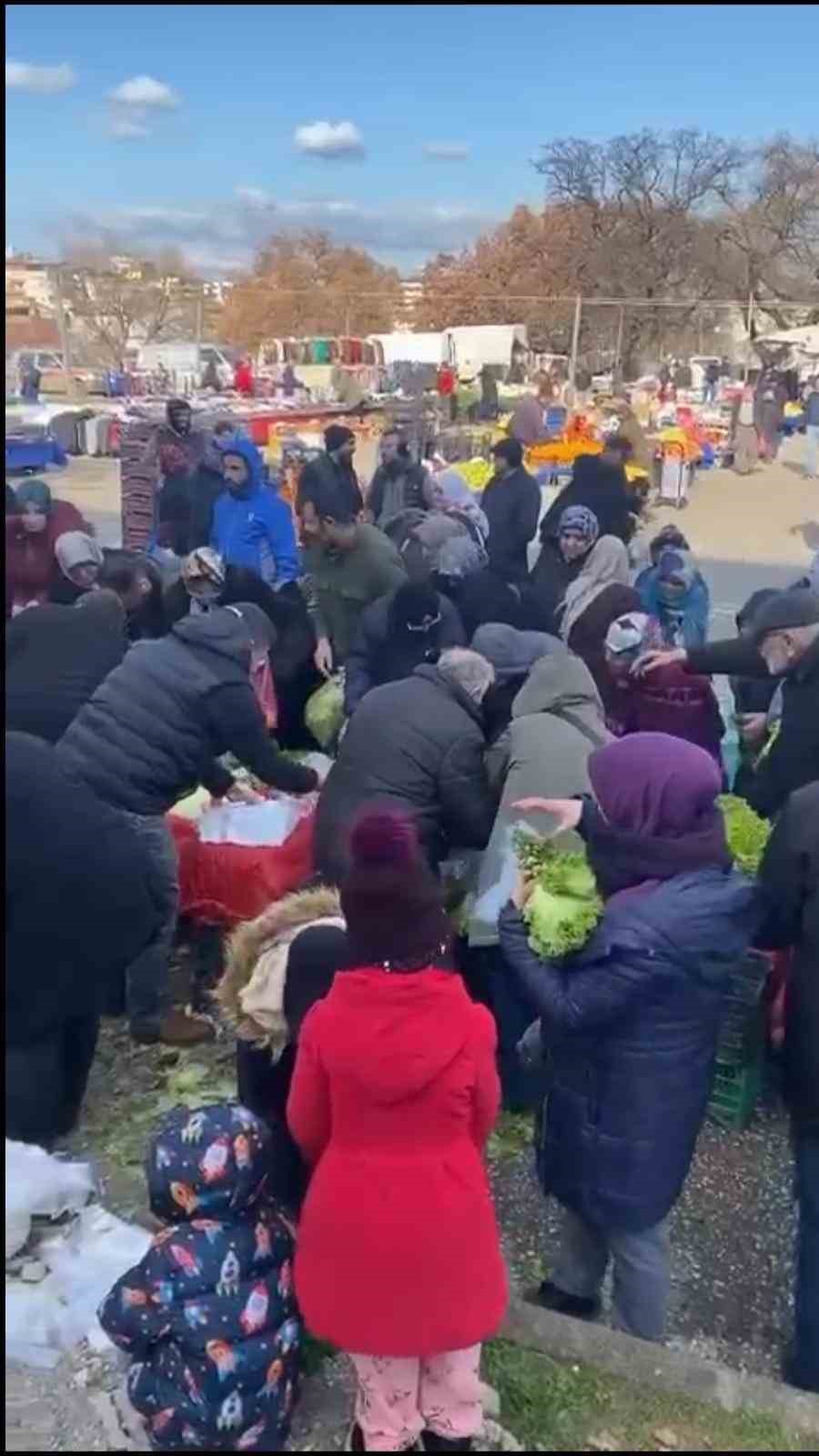 Merkez Osmangazi ilçesinde kurulan pazara gelen hayırsever bir vatandaş, pazarda bulunan bir tezgahı satın aldı. Tezgah sahibinden vatandaşlara dağıtmasını istedi. Tezgah sahibi, tezgahtaki malları vatandaşlara dağıttı. O anlar saniye saniye kameraya yansıdı.