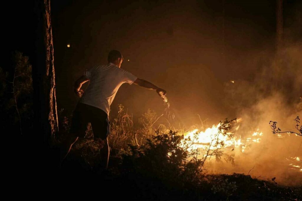 Bursa’nın Orhaneli ile Harmancık ilçeleri arasında çıkan orman yangını, gece saatlerinde etkisini artırarak geniş bir alana yayıldı. Havanın kararmasıyla birlikte alevler daha da belirgin hale gelirken, yangının oluşturduğu tehlike gözler önüne serildi. Yangına gece gündüz demeden müdahale eden ekipler, ulaşılması güç bölgelerde yoğun bir mücadele yürütüyor. Karadan müdahale eden ekipler, dört koldan yangına karşı savaş verirken, su tankerlerinin ulaşamadığı noktalarda ise pet şişelerdeki sularla söndürme çalışmaları yapılıyor.