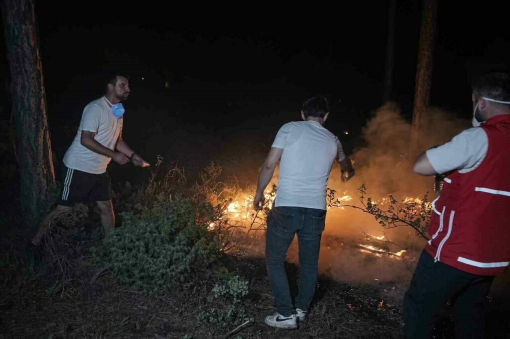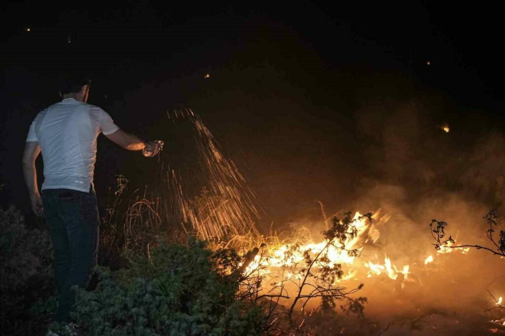 Bursa’nın Orhaneli ile Harmancık ilçeleri arasında çıkan orman yangını, gece saatlerinde etkisini artırarak geniş bir alana yayıldı. Havanın kararmasıyla birlikte alevler daha da belirgin hale gelirken, yangının oluşturduğu tehlike gözler önüne serildi. Yangına gece gündüz demeden müdahale eden ekipler, ulaşılması güç bölgelerde yoğun bir mücadele yürütüyor. Karadan müdahale eden ekipler, dört koldan yangına karşı savaş verirken, su tankerlerinin ulaşamadığı noktalarda ise pet şişelerdeki sularla söndürme çalışmaları yapılıyor.