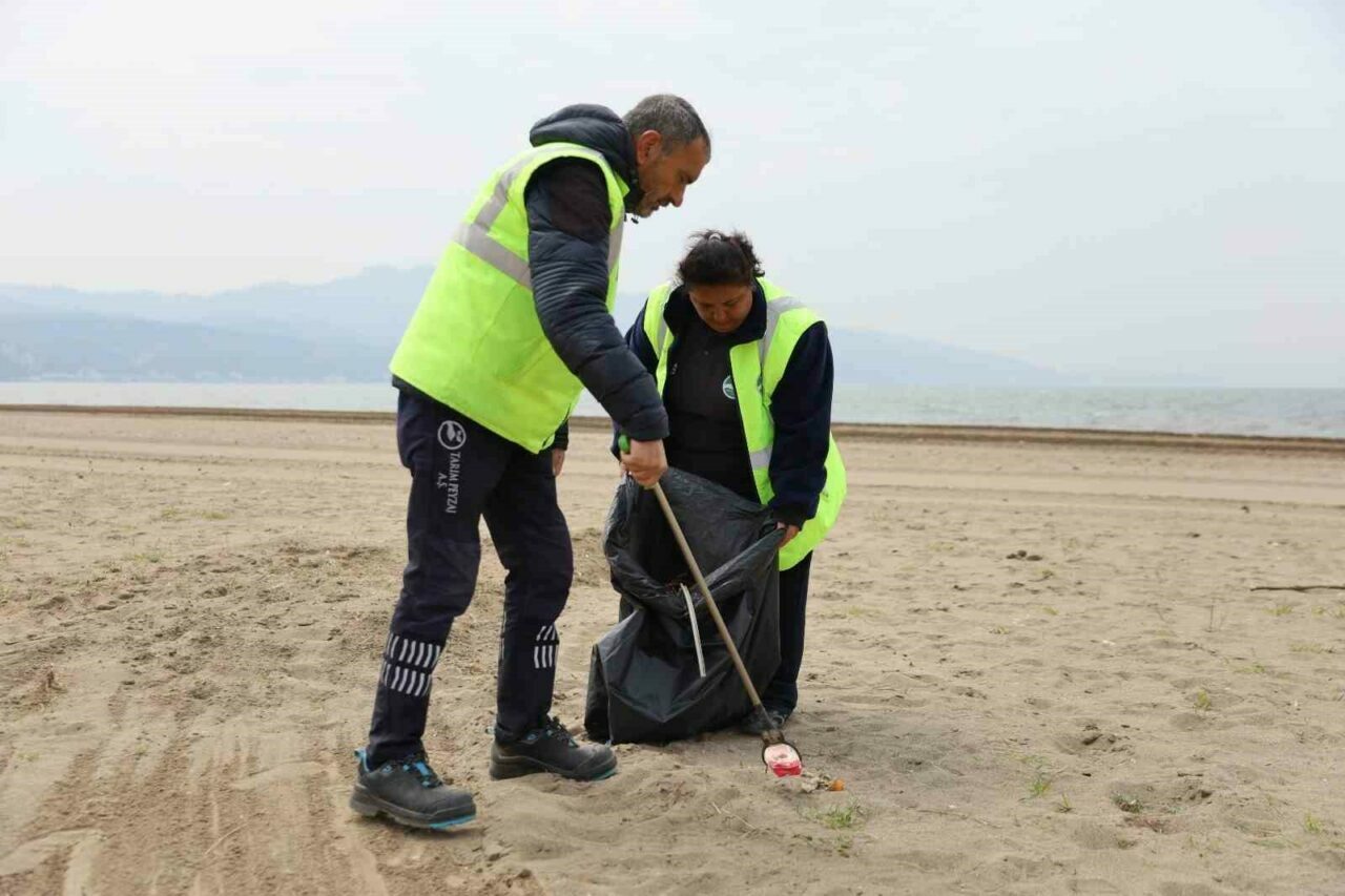 Park ve Bahçeler Dairesi Başkanlığı Sahil Planlama ve Yapım Şube Müdürlüğü koordinatörlüğünde Tarım Peyzaj AŞ’ye bağlı ekipler, Gemlik ilçesine bağlı Kumsaz Plajı’nda geniş çaplı temizlik çalışması gerçekleştirdi. Kış aylarında oluşan atıklar büyük bir titizlikle temizlenirken, kum serme ve tesviye işlemleri yapıldı. Yüzme sezonu boyunca plajlarda oluşan mevsimsel kirlilikler de ekipler tarafından düzenli olarak temizlenecek.