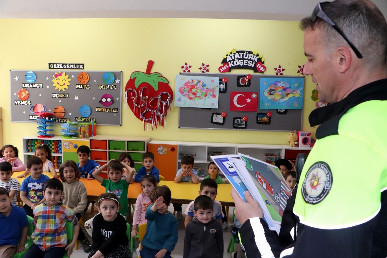 Polis teşkilatının kuruluşunun 179. Yılı ve 23 Nisan Ulusal Egemenlik ve Çocuk Bayramı münasebetiyle düzenlene etkinlilerde Mudanya Emniyet Müdürlüğü personelince 12 Eylül İlkokul ve Cafer Yener İlkokulu’nda öğrencilere yönelik ziyaretlerde bulundular. Ziyaret esnasında çocuklarla bir süre sohbet eden polis memurları çocuklara polislerin görevlerini anlattı. Polis memurları aynı zamanda polislik mesleğini anlatırken, öğrencileri trafik kuralları hakkında bilmeleri ve uymaları gereken kurallar hakkında bilgiler verdiler. Kırmızı ışık, yaya geçidi, araçta emniyet kemerinin önemi ve çocukların yolculuk esnasında ön koltukta seyahat etmemeleri konusunda bilgilendirdiler. Etkinlik sonunda görevli polisler, çocuklara eğitici ve öğretici boyama kitabı dağıttılar.