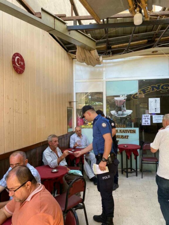 Karacabey Emniyet Müdürlüğü Toplum Destekli Büro Amirliği, Polis Merkezi Amirliği ve Asayiş Büro Amirliği ekipleri, Karacabey ilçesinde kıraathanelere giderek vatandaşlara dolandırıcılık faaliyetleri ile ilgili uyarılarda bulundu.