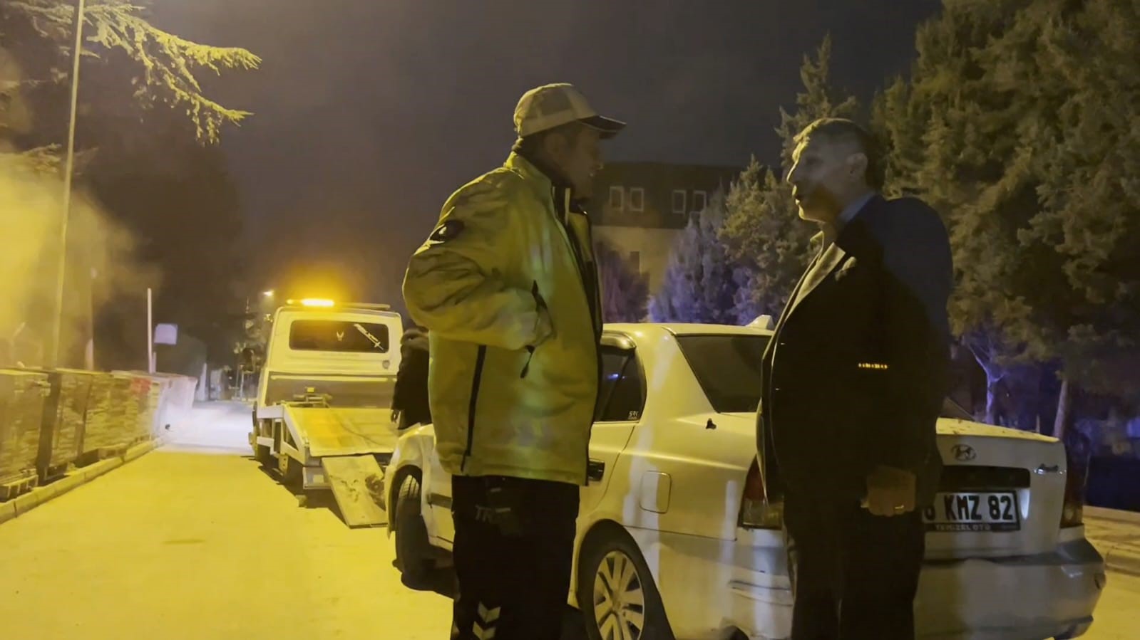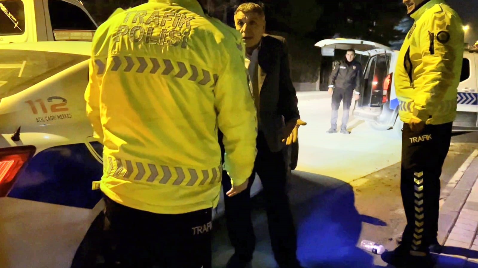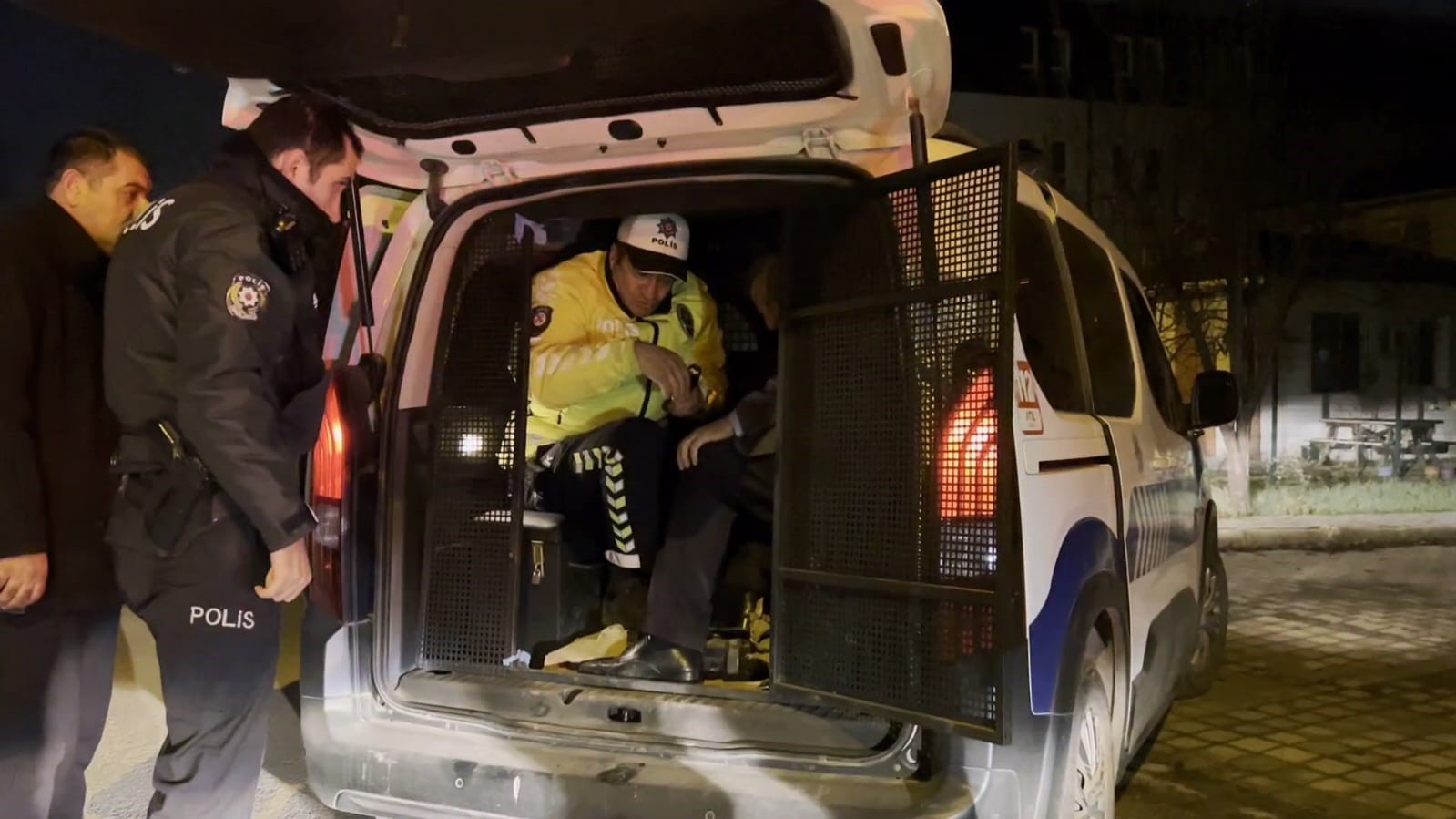 İfadesi alınmak için karakola götürülmek istenen sürücü, araca binmek istemedi. Polis ekiplerinin dakikalarca dil döktüğü sürücü, bir polisin “Gel beraber binelim” demesiyle ikna olarak araca bindi.