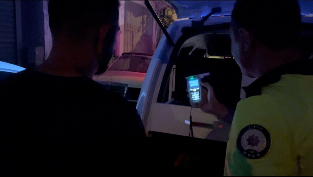 Bursa’da polis ekipleri şüphelendiği bir araca ‘dur’ ikazında bulundu. Kendisine yapılan ikaza uymayan sürücü, ters şeritten ara sokağa kaçarken, önünü gece bekçileri kesti. Yakayı ele veren sürücünün ehliyeti olmadığı ve alkollü direksiyon başına geçtiği öğrenildi.