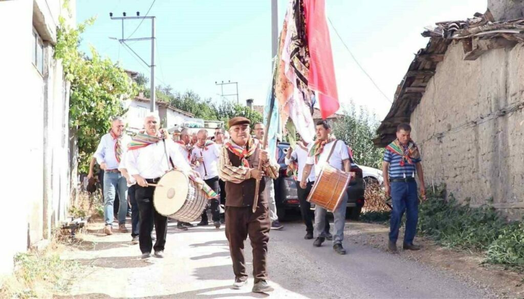 Yörük-Türkmen kültürünün yaşatıldığı düğünde gelin ve damat, geleneksel kıyafetler giydi. Köy meydanına kurulan Yörük çadırında, yerel sanatçı Mehtap Takmalı’nın türküleri eşliğinde kına gecesi düzenlendi. Gelinin ellerine kına yakılırken duygusal anlar yaşandı.