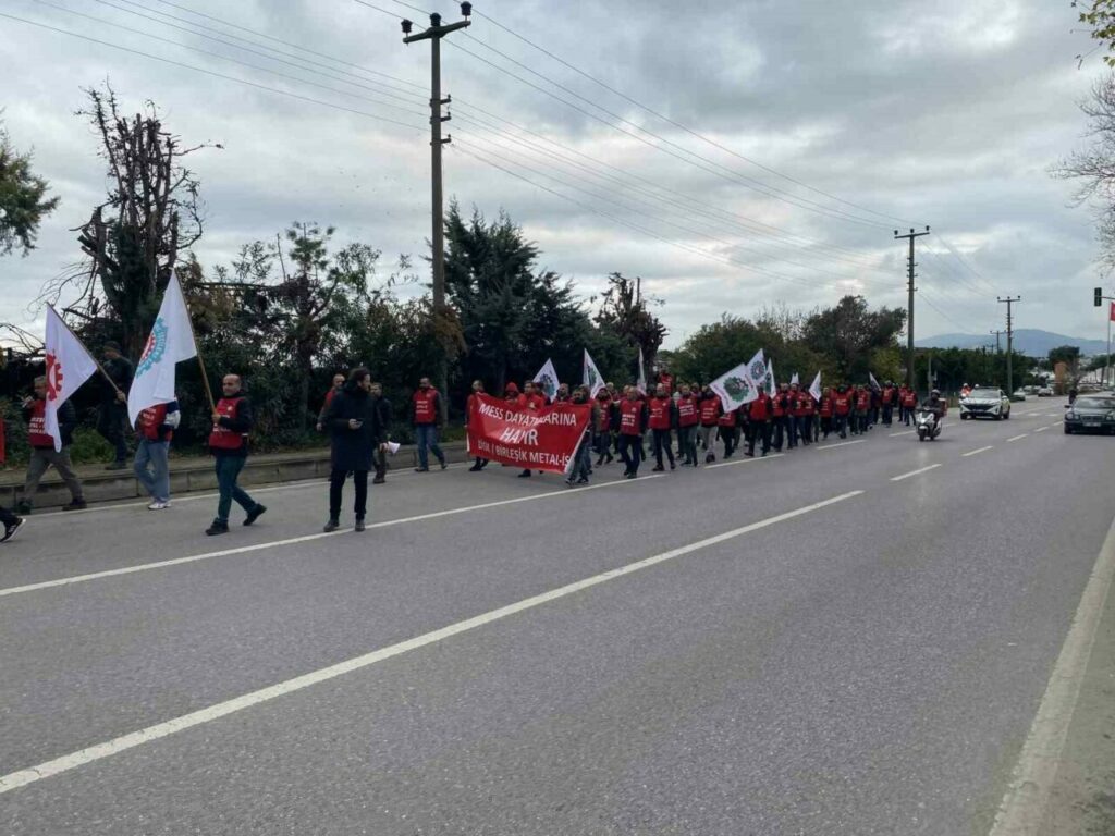Bursa’da Birleşik Metal-İş Sendikası üyesi Prysmian fabrikası işçileri, MESS Grup Toplu İş Sözleşmesi (TİS) sürecine ilişkin alınan eylem kararları kapsamında Mudanya’da yürüyüş ve basın açıklaması gerçekleştirdi.