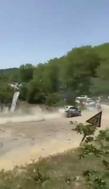 Bursa’nın Keles ilçesinde düzenlenen ralli yarışı sırasında kontrolden çıkan bir araç, seyircilerin bulunduğu bölgeye doğru savruldu. Kazada yaralanan olmazken, ralli pilotu aracıyla tekrar piste dönüp mücadeleye devam etti.