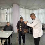 Mangal ve iftar sonrası yaşlılarla sohbet edip hayır duasını alan Ali Koçak, meşhur stetoskopu ile yaşlıların kontrolünü yapmayı ihmal etmedi