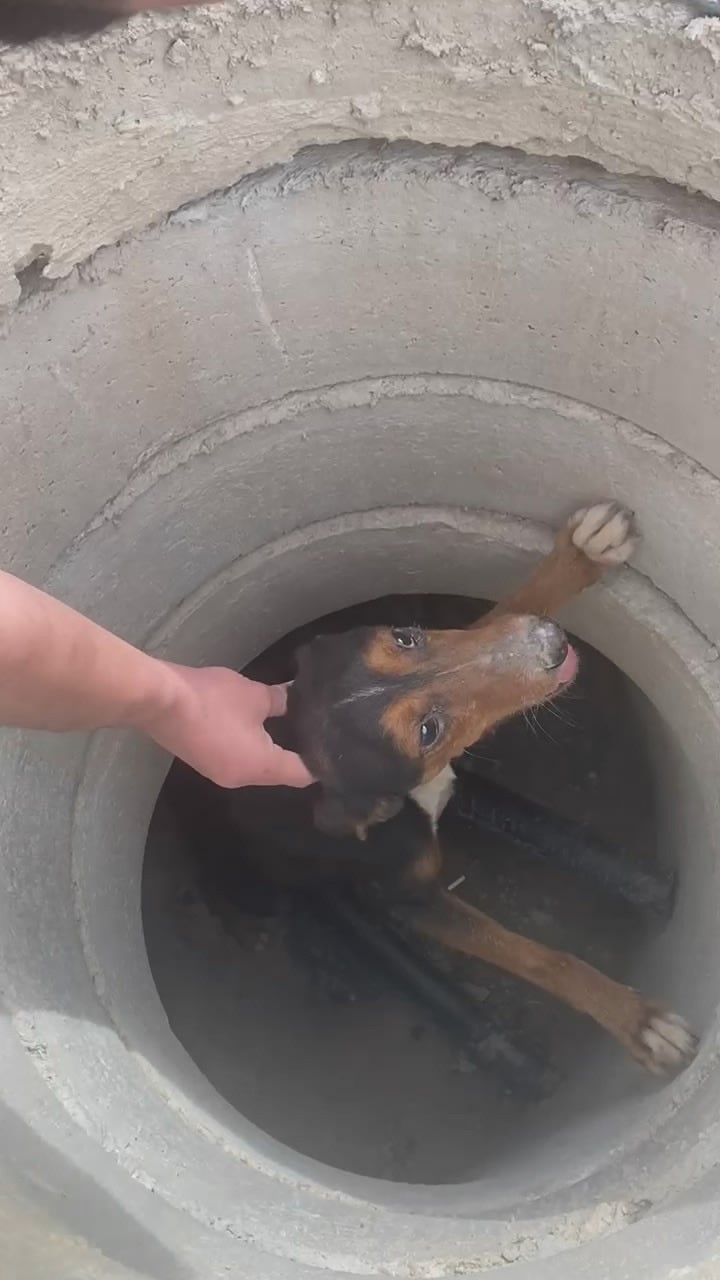 Barış Çelik, “Gayrimenkul işi ile uğraşıyorum. Tabelamızın düştüğüne dair haber geldi. Biz de gidip tabelayı kaldırmak istedik. Gittiğimizde rögar giderinden sesler geliyordu. İçeri baktığımda bir köpek gördüm. Seslendim, sesime yanıt verince ben de çekip çıkardım. Yemek ve su verdik. Kaç gündür mahsur kaldığını bilmiyorum ama zayıflamıştı. Elimizden geleni yaptık” diye konuştu.