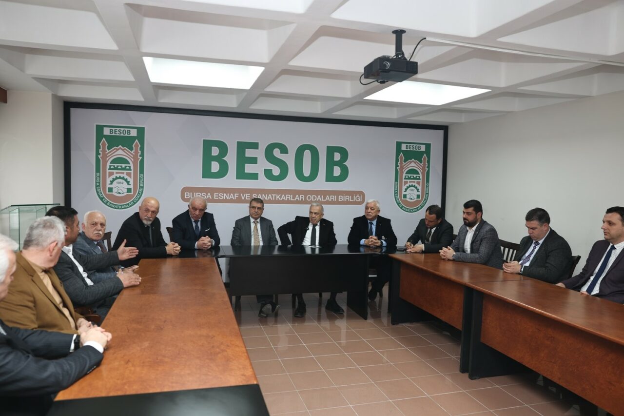 BESOB Başkanı Fahrettin Bilgit de ziyaretten duyduğu memnuniyeti ifade ederek, “Ülke olarak zor günlerden geçiyoruz. Esnaf bu durumdan en fazla yara alan kesim. Sorunlarımız var, çözüm önerilerimiz de var. Bunları sizin de dediğiniz gibi bir araya gelerek ortak fikirlerle çözebiliriz. Nilüfer’de bir esnaf çarşısı kurmak gibi düşüncemiz var. Oda başkanlarımızla bunu masaya yatırıp hem ticaret hem de şehre katkı açısından değerlendirebiliriz. Yanımızda olduğunuzu görmek samimiyetinizi hissetmek bize mutluluk veriyor” diye konuştu.