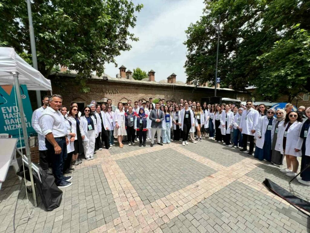 Bursa Kent Konseyi Başkanı Prof. Dr. Ertuğrul Aksoy, Türkiye’de tıp eğitimi almanın ve sağlık hizmeti sunmanın zorluklarına ve sağlık emekçilerinin çalışma şartlarına değinerek ülkede kalarak sağlık hizmeti veren gençlere teşekkür etti. Kent Konseyi’nin her zaman halkın faydasına olan projeler geliştirdiğini anlatan Aksoy, “Sağlık okuryazarlığı konusunda ciddi sıkıntılarımız var. Bu etkinlikteki amaçlarımız hem doktorlarımızın sağlık hizmetlerinde deneyimlerini artırmak hem de insan odaklı sağlık hizmetleri konusunda insanlarla buluşmalarını sağlamaktı. Koruyucu sağlık hizmetlerinin toplumun tüm kesimlerine yayılmasını arzuluyoruz. Etkinliğe katkı sunan 140 tıp fakültesi öğrencisine, 22’ye yakın doktor olacak arkadaşımıza ve kurumlara teşekkür ediyorum” dedi.