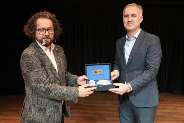 Konferans sonunda Belediye Başkanı Alper Taban da selamlama konuşması ve hediye takdimi için sahneye davet edildi. Başkan Taban, “Said Ercan hocamıza teşekkür ediyorum bugün hem Kitap Günleri Fuarımızda vatandaşlarımızla bir araya geldiler hem burada bizlerle birlikte oldular. Çok kıymetli bir buluşma oldu. Salonu dolduran siz kıymetli vatandaşlarımıza da teşekkür ediyorum. Nihayet itibariyle tüm dünyanın gözü önünde yaşanan bir vahşet var, zulüm var. İnsan kendisini sorguluyor, sorumlu tutuyor. Kıymetli hocamızın anlattığı gibi yapılabilecek bir şeyler de var. Müslümanlar olarak boykot yapılabilir. İnşallah bu akşam da hepimize vesile olsun. Bizler karınca misali safımızı belirleyelim inşallah. Cenabı Allah oradaki insanların da yardımcısı olsun” diye konuştu. Ardından gecenin anısına Said Ercan’a hediye takdiminde bulundu.
