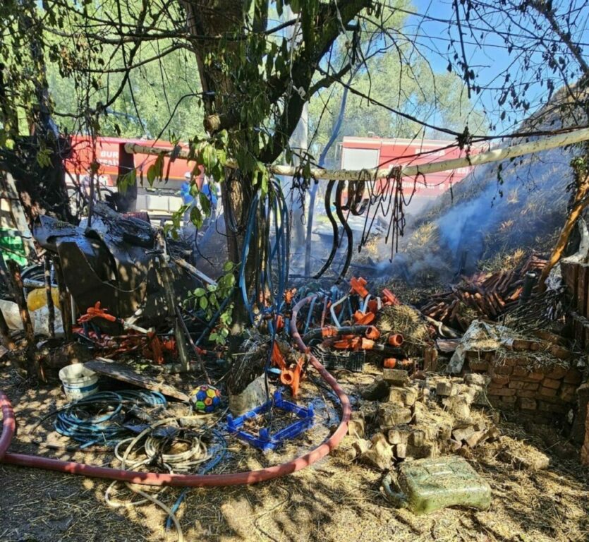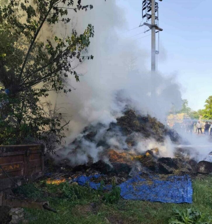 Yangın yarım saat süren çalışma sonucu söndürüldü. Yangın sonucu bine yakın saman balyası, su motoru, motosiklet hasar gördü.
