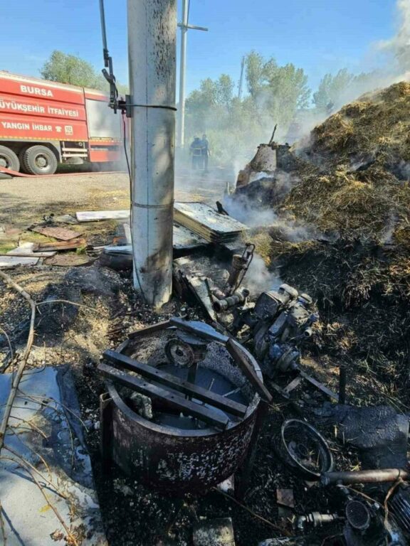 Bursa’nın İnegöl ilçesinde saman balyaları alev alev yandı.