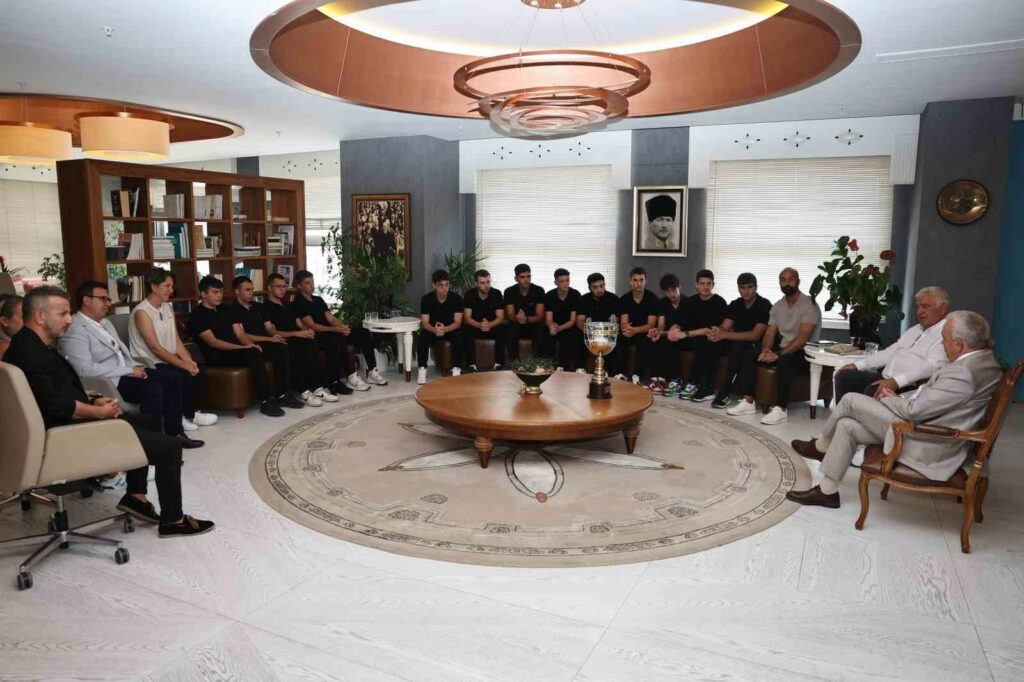 2023-2024 Sezonu Hentbol Yıldız Erkekler Türkiye Şampiyonu olan Nilüfer Belediyespor ekibi, kazandıkları kupayı Nilüfer Belediye Başkanı Şadi Özdemir’e sundu