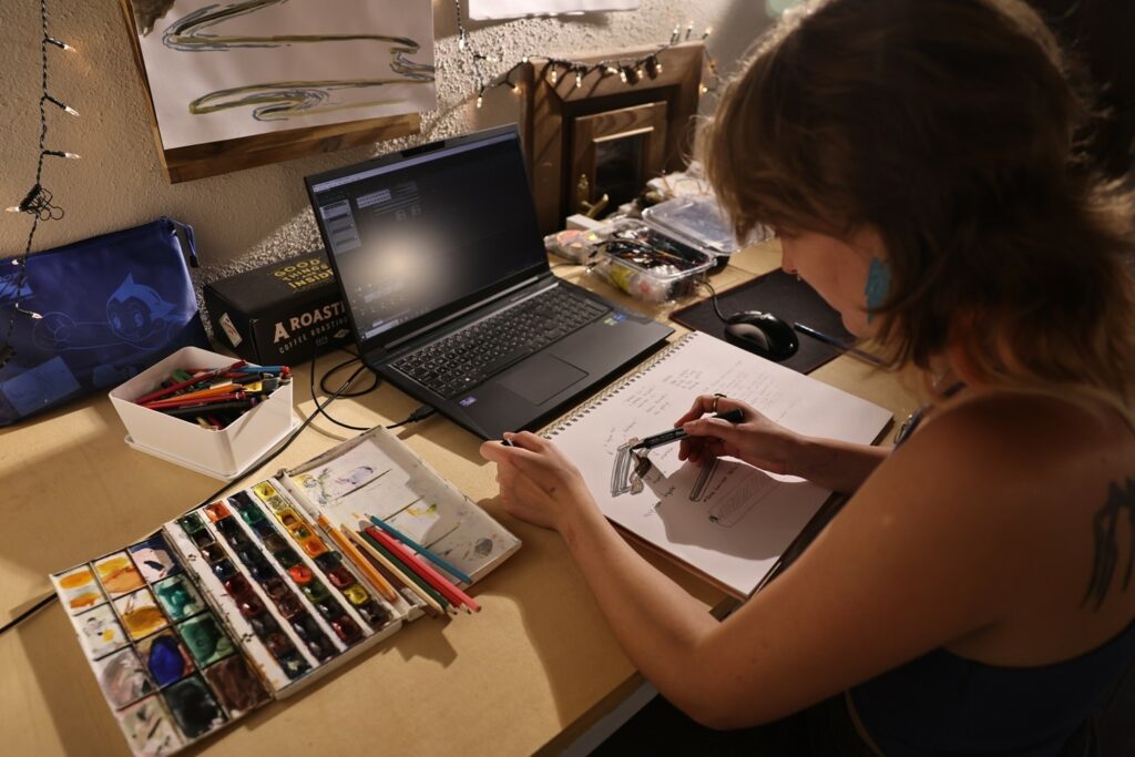 Yekateryna Grygorenko ise birlikte kaldıkları sanatçılarla aynı zamanda birbirlerini de beslediklerini söyledi. Grygorenko, “Misi’nin çok derin bir hikayesi var. Burada Misi’nin seslerini kaydediyorum. Bu kayıtlar ile bir iş üreteceğim. Seslerin benim üzerimde uyandırdığı duyguları kağıda yansıtıyorum” dedi.