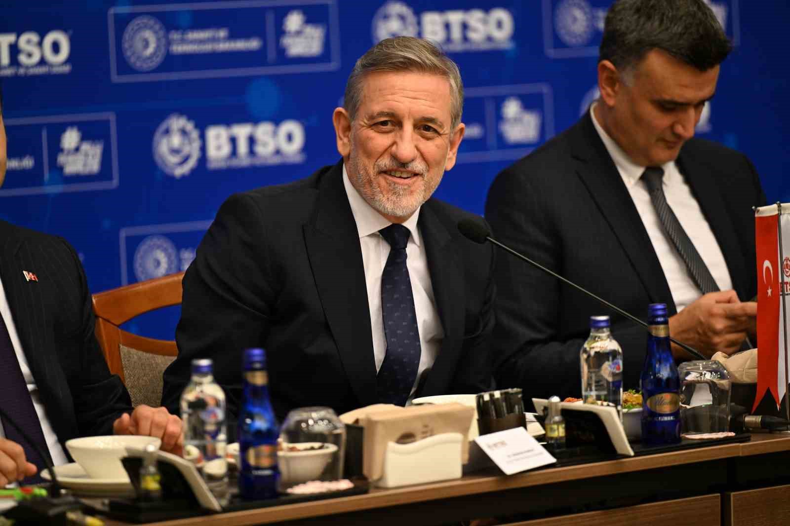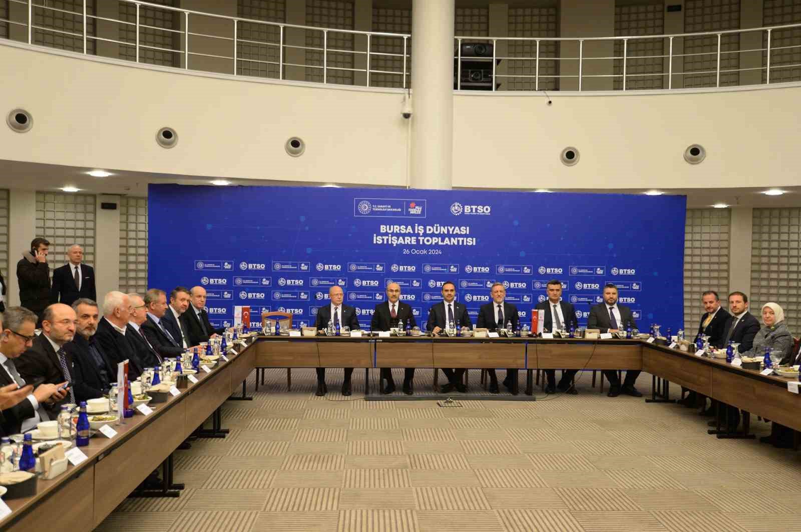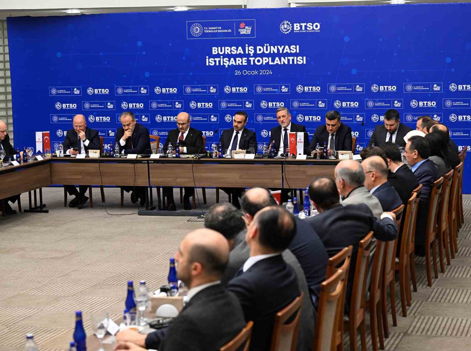 Bursa İş Dünyası ile İstişare Toplantısı, BTSO Ana Hizmet Binası’nda gerçekleştirildi. Toplantıya, Bakan Kacır’la birlikte Vali Mahmut Demirtaş, Büyükşehir Belediye Başkanı Alinur Aktaş, Bursa milletvekilleri, BTSO Yönetim Kurulu Başkanı İbrahim Burkay, BTSO Yönetim Kurulu ve meclis üyeleri ile Bursa iş dünyası temsilcileri katıldı. BTSO Yönetim Kurulu Başkanı İbrahim Burkay, toplantının açılışında yaptığı konuşmada, Bursa’nın güçlü bir üretim şehri olduğunu söyledi. İzmir İktisat Kongresi’nde alınan kararların ardından kentte Sümerbank, İpek Fabrikası ve Türkiye’de ilk olma niteliği taşıyan Bursa Organize Sanayi Bölgesi gibi yatırımların hayata geçtiğini hatırlatan Başkan Burkay, “Bursa’mızın, bugün sanayide güçlü bir şehir kimliği kazanması, o dönemde atılan adımların neticeleri. Bugünkü adımlarımız da gelecek 50 yılımızı şekillendirecek” dedi.