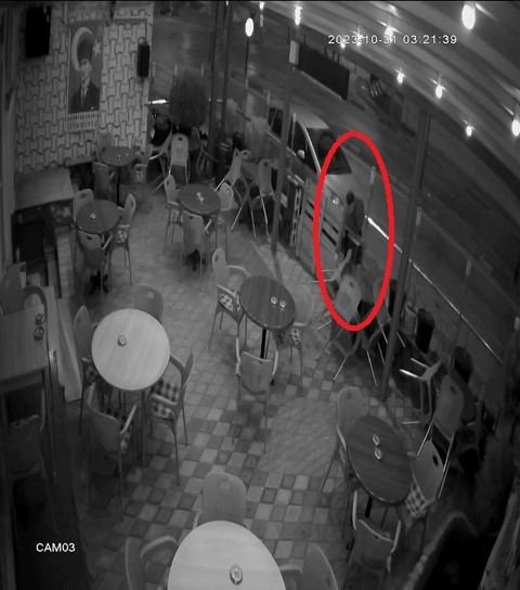 Bursa’da bir iş yerinde meydana gelen sandalye hırsızlığı saniye saniye güvenlik kameraları tarafından kaydedildi.