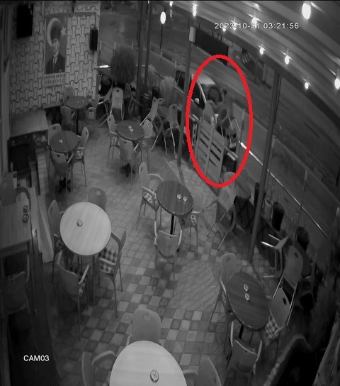 Olay, merkez Yıldırım ilçesi Erikli Mahallesi’nde meydana geldi. Akşam saatlerinde cadde üzerinde ilerleyen bir şüpheli, yol kenarında gördüğü kafenin sandalyelerini gözüne kestirdi. İşletmenin kapısından girmeden sandalyelere uzanan kişi, aldığı malzemeleri kapı önüne dizdi. O anlar güvenlik kamerasına anbean yansırken, şüpheli sandalyelerle kayıplara karıştı.