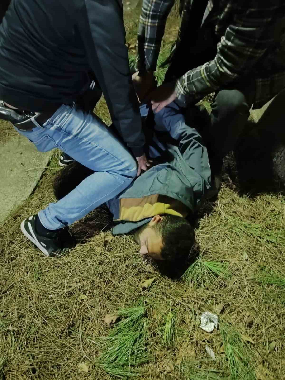Güvenlik kamerasını detaylı şekilde inceleyip, şehir kameralarından takip yapan, görgü tanıklarının ifadesine başvuran polisler şüpheli Emre V.’nin en son Osmangazi ilçesi Demirtaş Mahallesi’nde görüldüğünü belirledi. Çember daraltılıp tüm ekipler bölgeye yoğunlaştırıldı. Polis ekiplerini görünce kaçmaya çalışan Emre V. ormanlık alanda nefes kesen operasyonla gözaltına alınıp sorgulanmak üzere Asayiş Şube Müdürlüğü’ne götürüldü.
