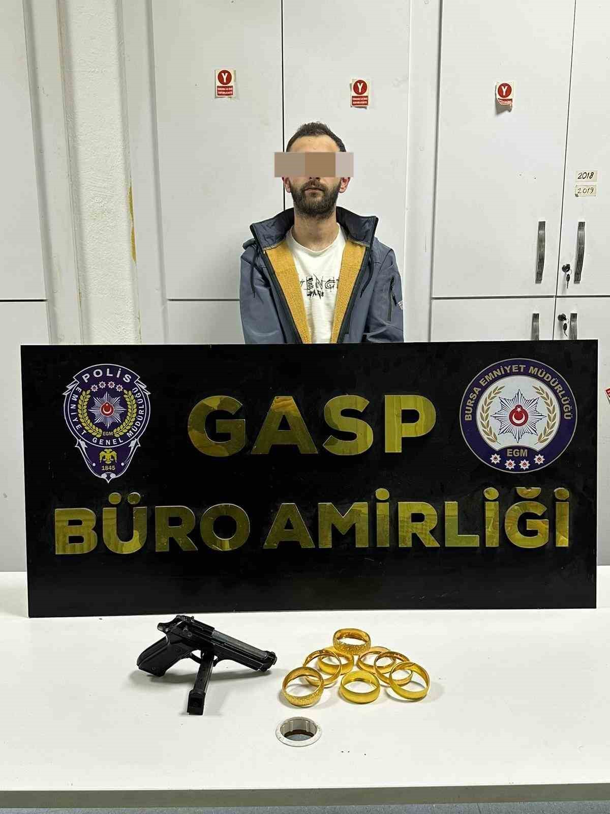 Bursa Emniyet Müdürlüğü Asayiş Şube Müdürlüğü’ne bağlı Gasp Bürosu ekipleri, titiz bir soruşturma gerçekleştirip zanlıyı 24 saat geçmeden kıskıvrak yakaladı.