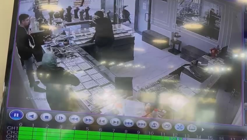 Olay, merkez Yıldırım ilçesi Millet Mahallesi’nde meydana geldi. 2. Vatan Caddesi üzerinde bulunan kuyumcunun önünde motosikleti ile duran Emre V., yüzünde kar maskesi ve elinde silahla gündüz vakti içeriye daldı. Kuyumcuda daha önceden gözüne kestirdiği Adana burması bileziklerin olduğu tarafa yönelen Emre V., 9 adet bileziği alarak tekrar motosikletine binip, hızla olay yerinden kaçtı. O anlar güvenlik kamerasına yansırken, polis Emre V.’nin yakalanması için güvenlik kameralarını inceledi.