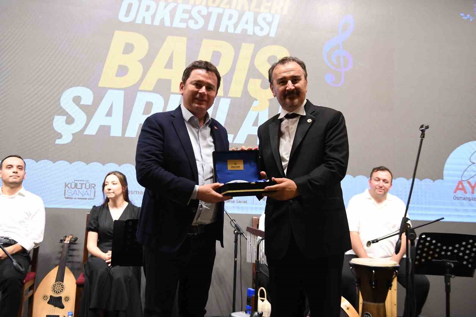 Başkan Aydın, konuşmasının ardından Osmangazi Dünya Müzikleri Orkestrası üyelerine, teşekkür plaketi ve çiçek takdim etti.