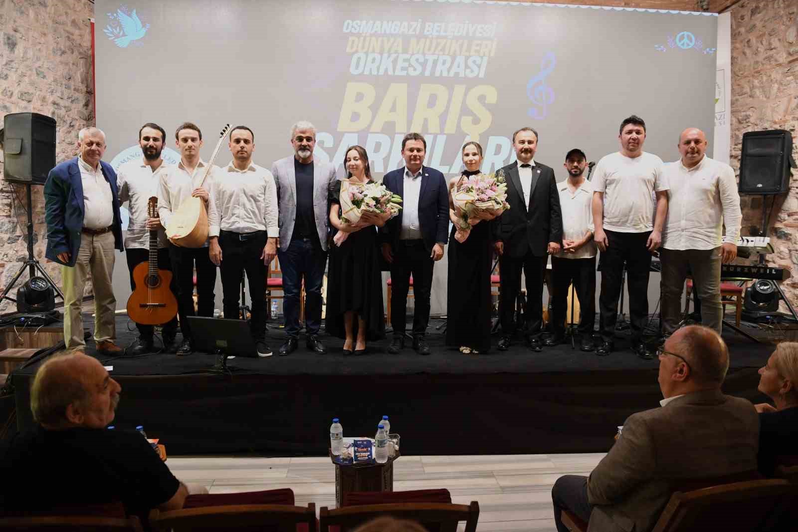 Osmangazililerin yoğun ilgi gösterdiği konserde, savaş acısını çeken ve savaşın hüznünü yaşayan ülkeleri anlatan Li Beirut, We Will Not Go Down (Song for Gaza), Ederlezi, Güzel Türkistan, Srebrenitsa, Karabağ adlı şarkıların yanı sıra, Neşet Ertaş, Aşık Veysel, Aşık Mahzuni Şerif, Nesimi Çimen ve Zülfü Livaneli gibi birbirinden değerli sanatçılarımıza ait olan ve içerisinde barış, dostluk, kardeşlik mesajlarının yer aldığı Bir İnsan Ömrünü Neye Vermeli, Parsel Parsel Eylemişler Dünyayı, Beni Hor Görme Gardaşım, Sevgidir Sevgi, Gel Sevelim ve Barış Güvercini adlı türküler, barış dolu bir gelecek için seslendirildi. Konser sırasında sahneye kurulan ekranda, Gazze, Doğu Türkistan ve Bosna Hersek’teki savaşlarda yaşanan zulüm ve katliamlara ait görüntülere yer verildi. Birbirinden değerli saz ve söz sanatçılarından oluşan Osmangazi Dünya Müzikleri Orkestrası, konser sonunda, uzun süre ayakta alkışlandı.