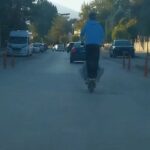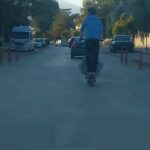 İnegöl ilçesinde elektrikli scootera 2 kişi binen gençlerin tehlikeli yolculuğu cep telefonu kamerasına yansıdı. Biri öne oturarak caddede seyreden gençler kazaya davetiye çıkardı.