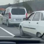 Bursa’da şehirlerarası yolda arıza yapan otomobilin tehlikeli şekilde çekilmesi kameraya kaydedildi.