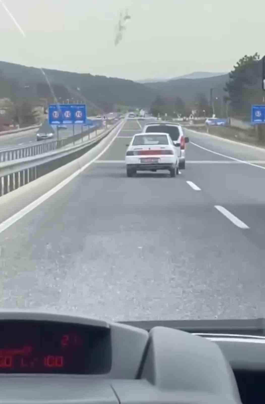 Olay, merkez Osmangazi ilçesi Bursa-Yalova Yolu üzerinde meydana geldi. Edinilen bilgiye göre, arıza yapan otomobili şehirlerarası yolda hafif ticari araç tehlike saçarak çekti. Zaman zaman süratli şekilde giden sürücü, yürekleri ağza getirdi. O anlar trafikteki başka bir sürücünün kamerasına yansıdı.