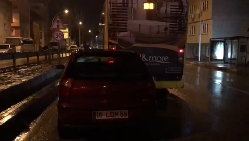 Bursa’da bir otomobil şerit değiştirirken belediye otobüsüne arkadan çarptı. Kazada, otomobil sürücüsü yaralandı.