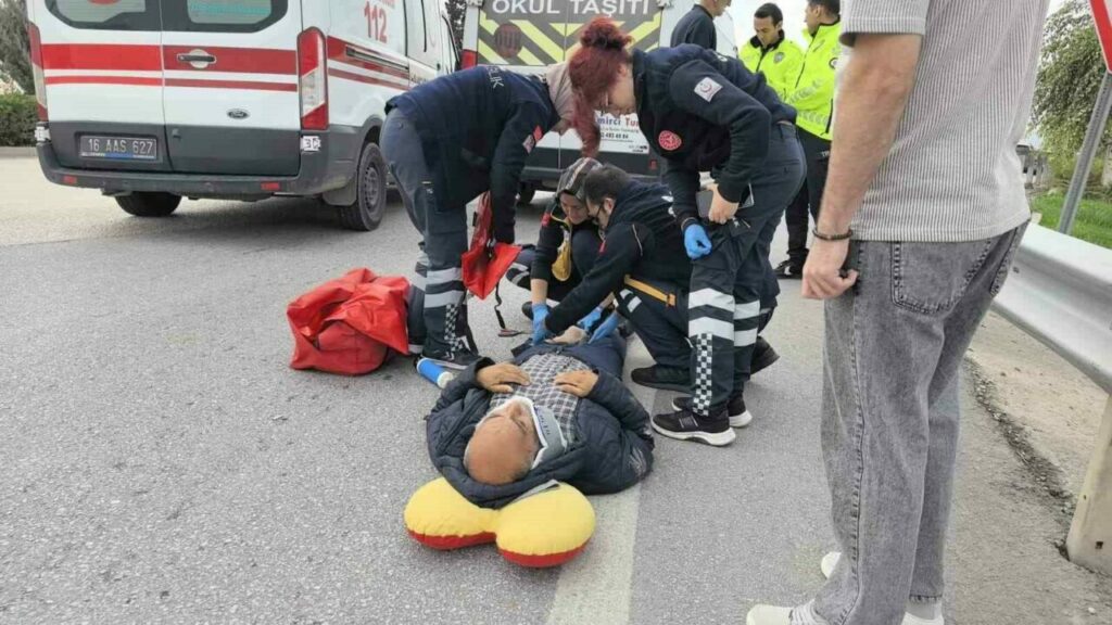 Bursa’da kavşaktan dönüş yapan minibüs, yol kenarında yürüyen yaşlı adama çarptı, ağır yaralanan adam hastaneye kaldırıldı.
