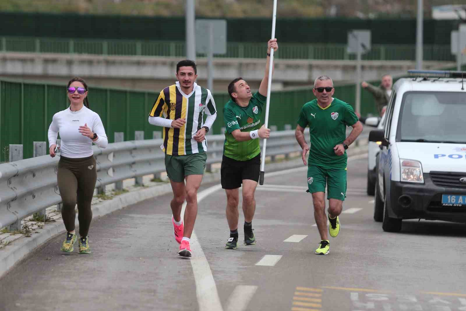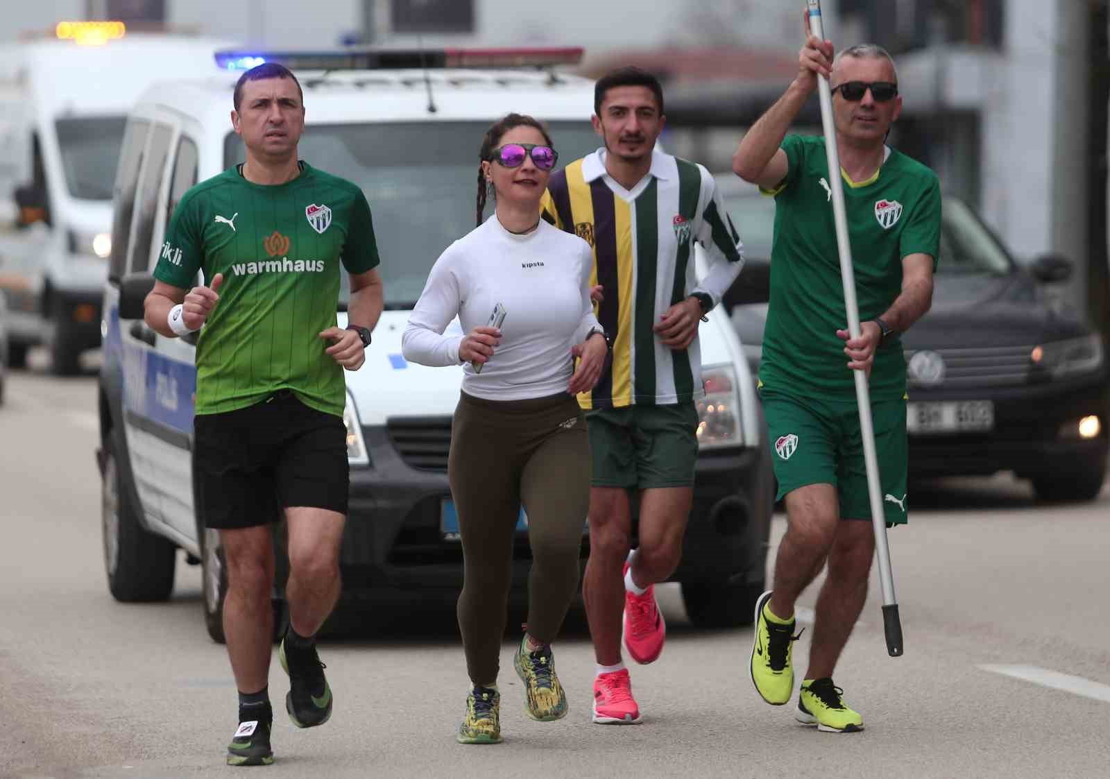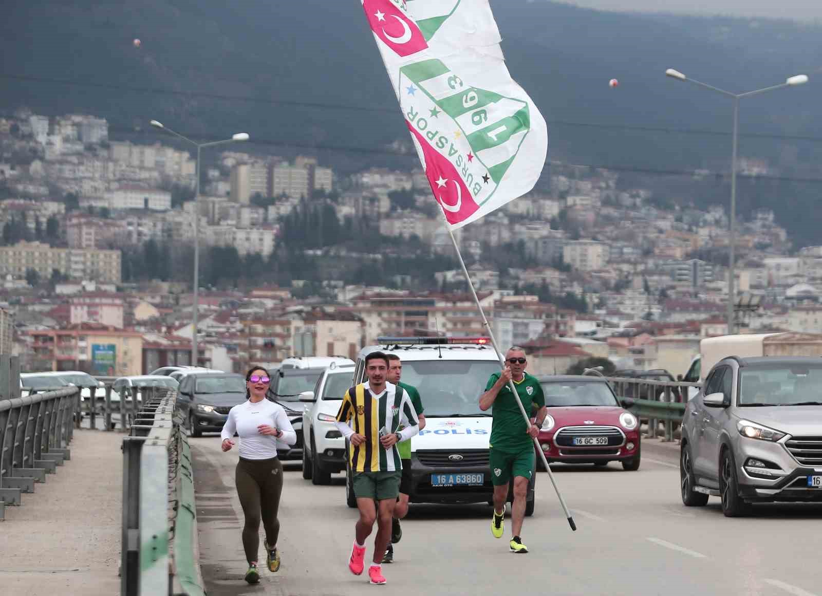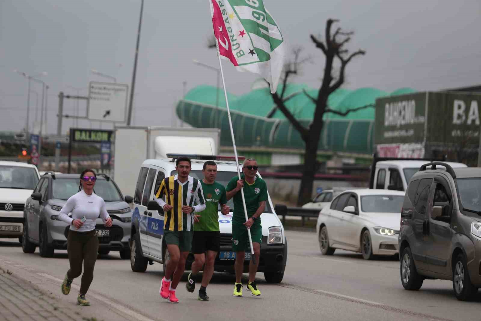 Maraton koşucusu Yasin Avcı ve 3 arkadaşı, ‘Sevgiliye Koşuyoruz’ sloganıyla Yüzüncü Yıl Atatürk Stadyumu önünden Bursaspor İbrahim Yazıcı Özlüce Tesisleri’ne kadar yaklaşık 8 kilometre koştu. 3 metrelik Bursaspor bayrağı ile koşan Yasin Avcı ve 3 arkadaşına polis ekibi de eşlik etti. Ana yolun sağ tarafından koşan Avcı ile arkadaşlarına sürücüler el sallayarak ve korna çalarak destek verdi.
