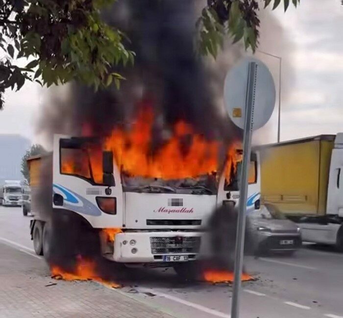 Olay, Bursa Çevre Otoyolu’nda meydana geldi. İddiaya göre, trafikte ilerleyen bir kamyonun motor kısmından henüz bilinmeyen bir nedenle dumanlar yükselmeye başladı. Kısa sürede alevlere dönüşen yangın, tüm aracı sardı. Durumu fark eden sürücü, kamyonu emniyet şeridine çekerek kendini dışarı attı. İhbar üzerine olay yerine çok sayıda itfaiye ve polis ekibi sevk edildi. İtfaiye ekipleri yangına kısa sürede müdahale ederek alevleri kontrol altına aldı. Yangın sırasında çevrede yoğun duman oluşurken, bölgedeki trafik bir süre aksadı.