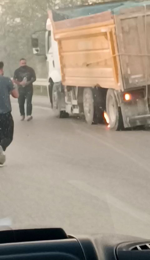 Olay, merkez Nilüfer ilçesi Görükle Mahallesi mevkiinde meydana geldi. Anayolda ilerleyen bir kamyon sürücüsü, kamyonun tekerinin fırlamasıyla şoke oldu. Hemen aracı kenara çeken sürücü, eline aldığı suyla lastiklerin bulunduğu kısımda çıkan alevleri söndürmeye çalıştı.