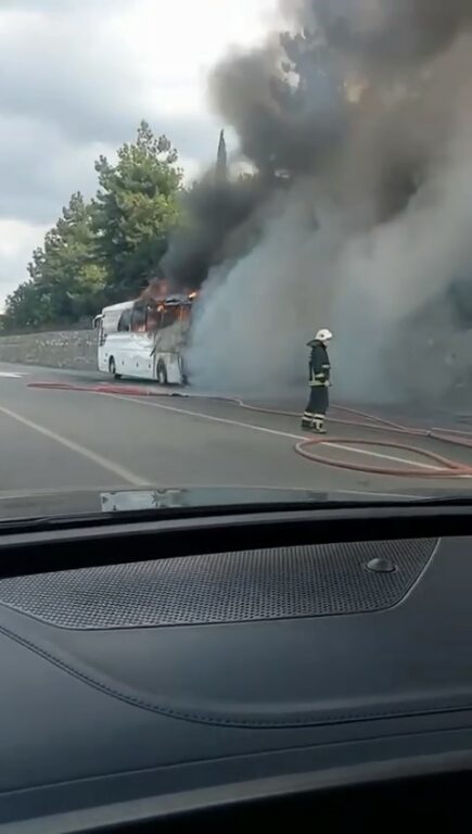 Bursa’da yolcu otobüsü seyir halindeyken alev alev yandı. Yolcular araçtan tahliye edilirken, itfaiye ekiplerince alevler kısa sürede kontrol altına alındı.