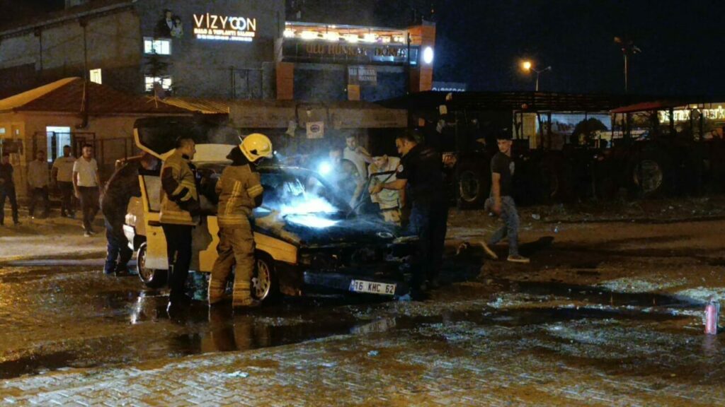 Edinilen bilgiye göre, saat 23.00 sıralarında Sinanbey Mahallesi 2.Metal Sokak üzerinde seyir halinde olan Hüseyin Ç.(56) yönetimindeki 16 KHC 62 plakalı otomobilin motor kısmından dumanlar çıkmaya başladı. Bir anda alev alan otomobil yanmaya başladı. Sokak ortasında otomobili park eden sürücü otomobilden çıkarak aracı söndürmeye çalıştı ama başarılı olamadı. Vatandaşların haber vermesi üzerine olay yerine gelen itfaiye ekipleri tarafından yangın kısa sürede kontrol altına alınarak söndürüldü. Yangın sonucunda otomobil kullanılamaz hale geldi.