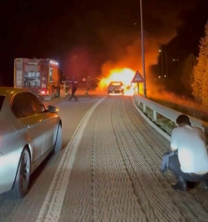 BURSA’DA BİR OTOMOBİLİN MOTORUNDA SEYİR HALİNDEYKEN YANGIN ÇIKTI, ALEV TOPUNA DÖNEN OTOMOBİL KULLANILAMAZ HALE GELDİ.