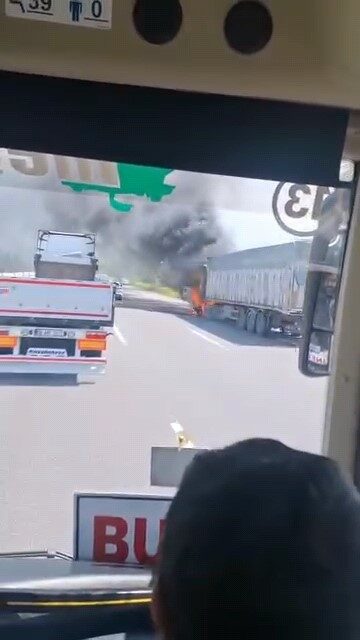 Bursa’nın İnegöl ilçesinde seyir halinde olan tır alev alev yandı.