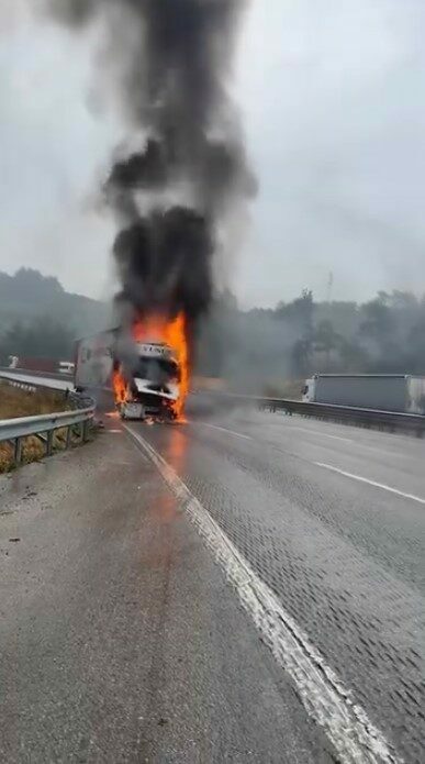 Bursa-Yalova yolunda bir tır seyir halindeyken alev aldı. Çıkan yangın, itfaiye ekiplerince söndürülürken büyük kısmı alevlere teslim olan tır kullanılamaz hale geldi.