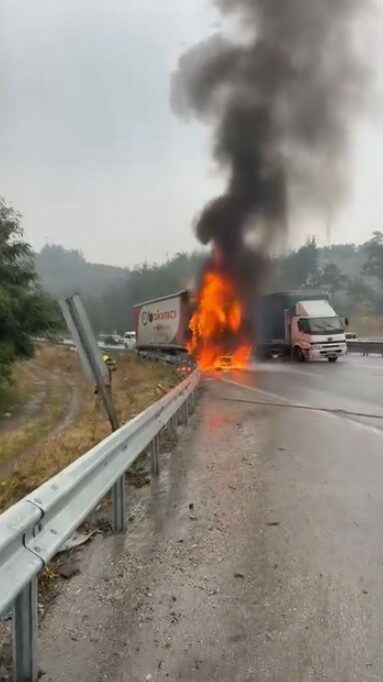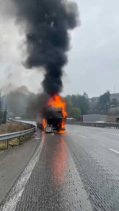 Bursa-Yalova yolunda bir tır seyir halindeyken alev aldı. Çıkan yangın, itfaiye ekiplerince söndürülürken büyük kısmı alevlere teslim olan tır kullanılamaz hale geldi.