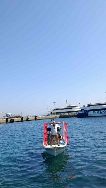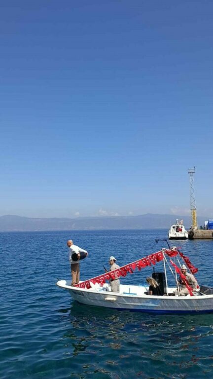 Bayraklar ile donatılan balıkçı teknesi Çanakkale Zaferi Askerleri ile yoğun ilgi ve alkışlar eşliğinde yine bir ilke imza atmanın gururunu yaşadı.