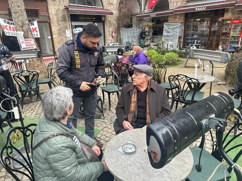 Bursa İl Emniyet Müdürlüğü Siber Suçlarla Mücadele Şube Müdürlüğü ekipleri, Hanlar Bölgesi’nde vatandaşlara farkındalık eğitimi verdi.