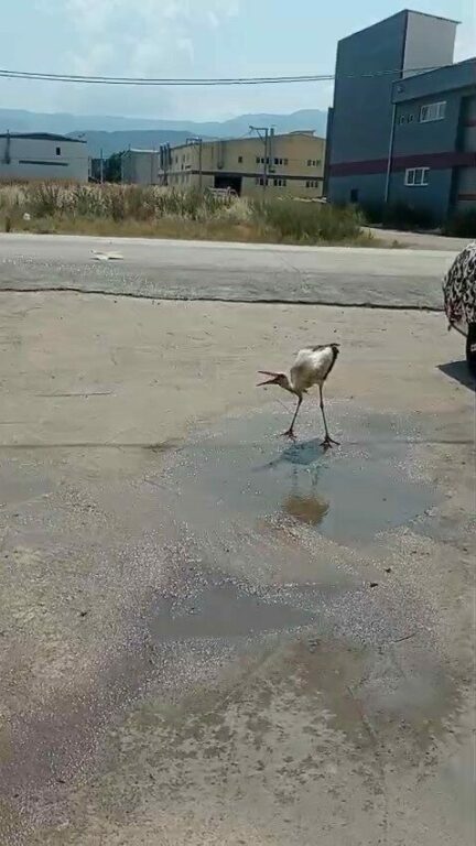 Hava sıcaklığının 40 dereceye yaklaştığı ilçede, susuzluktan ve sıcaktan bunalan bir leylek, Akhisar Mahallesi’nde evin önüne kondu. Gölgeye sığınan leyleği fark eden ev sahibi Hüseyin Kuzu, hortumla kuşu nazikçe ıslatarak ferahlamasını sağladı. O anlar cep telefonu kamerasıyla kaydedildi. Görüntülerde leyleğin, suyla temas ettikten sonra rahatladığı ve çevresine güvenle bakındığı görüldü.
