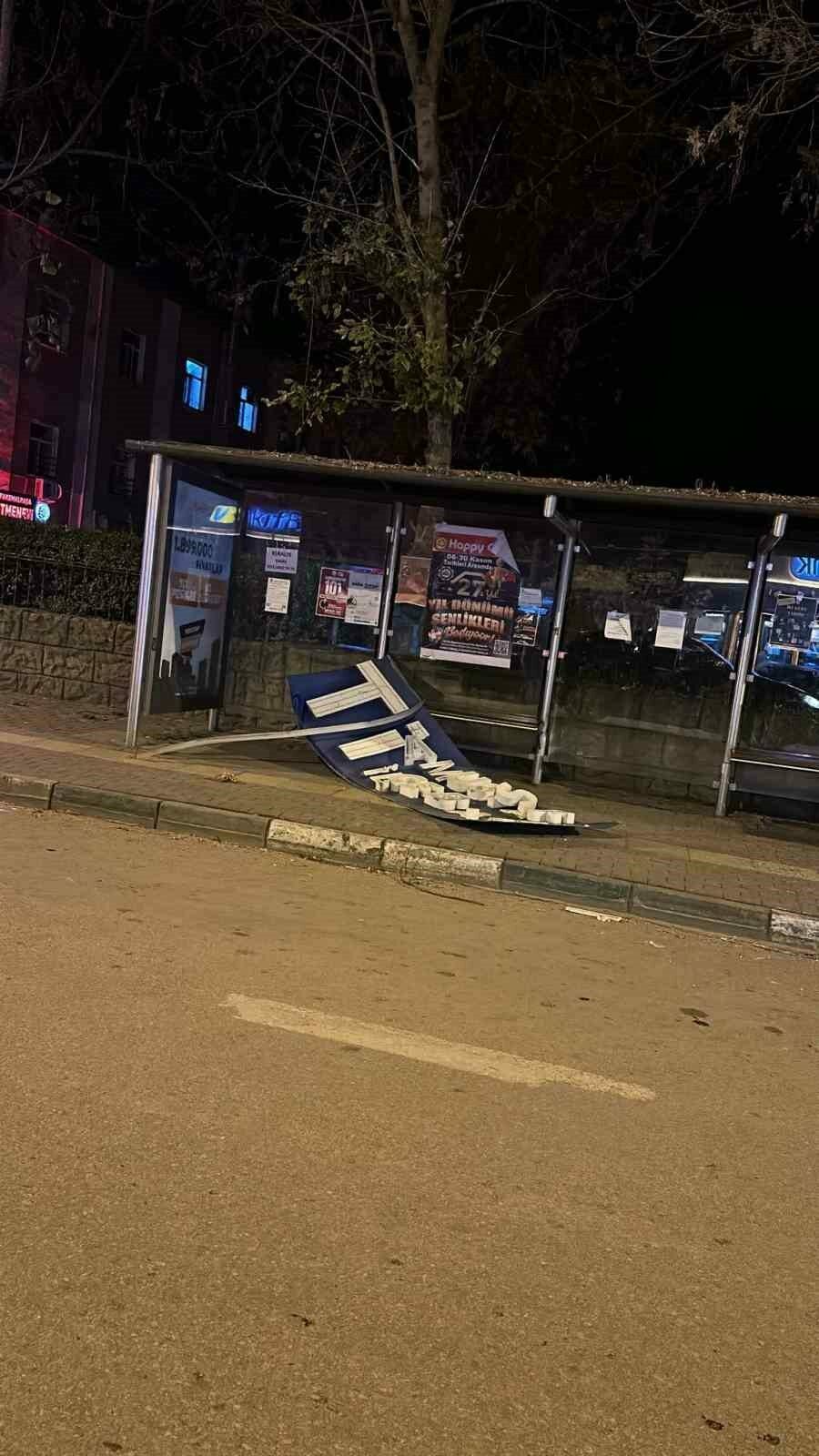 ŞİDDETLİ RÜZGAR TABELAYI YERİNDEN SÖKTÜ
